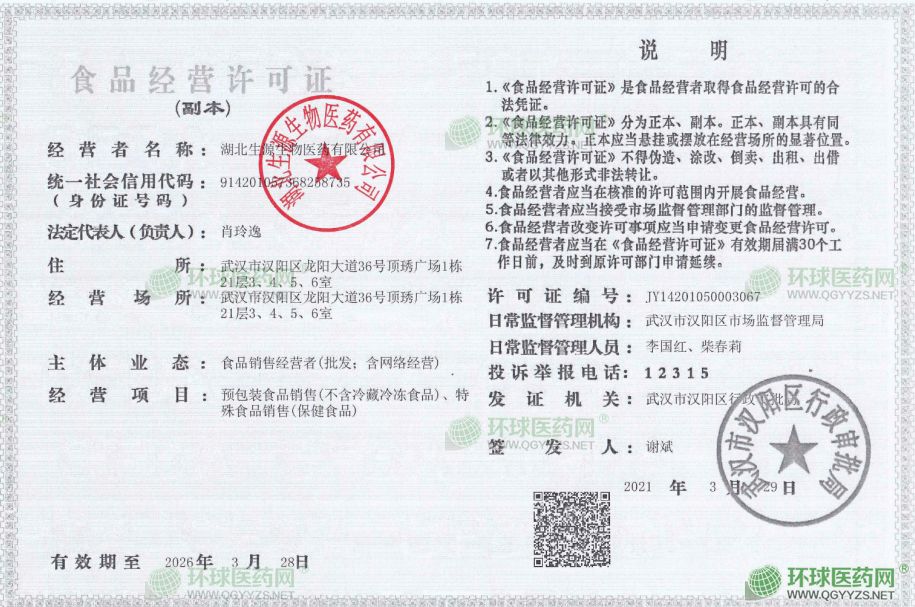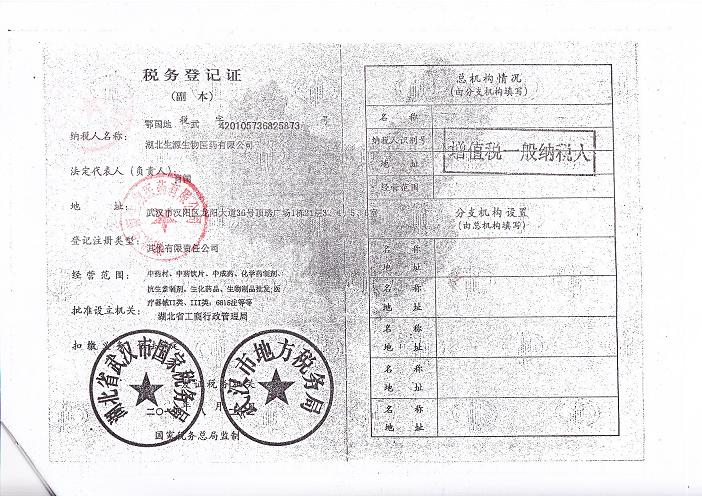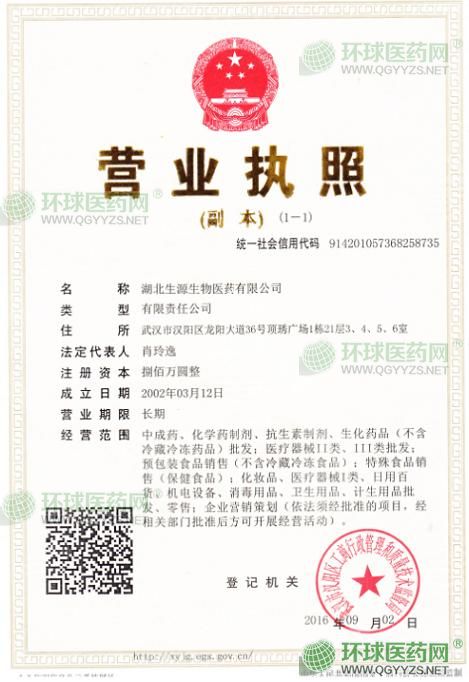 [企業(yè)法人]:湖北生源生物醫(yī)藥有限公司