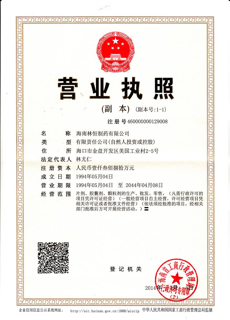 1998年,自籌資金建立了自己的生產(chǎn)基地-海南林恒制藥有限公司。制藥有限公司為固體制劑車間,總投資3600萬元,設(shè)計生產(chǎn)能力為年產(chǎn)膠囊劑、固體制劑、片劑及沖劑各8億粒(袋)。2000年3月成為海南省第二家整體通過GMP認(rèn)證企業(yè);2003年被認(rèn)定為海南省高新技術(shù)企業(yè)。