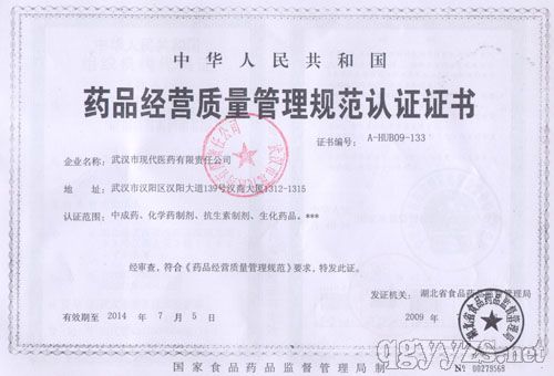 - 藥品經(jīng)營(yíng)質(zhì)量管理規(guī)范認(rèn)證證書(shū)