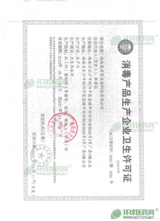 - 消毒產(chǎn)品許可證