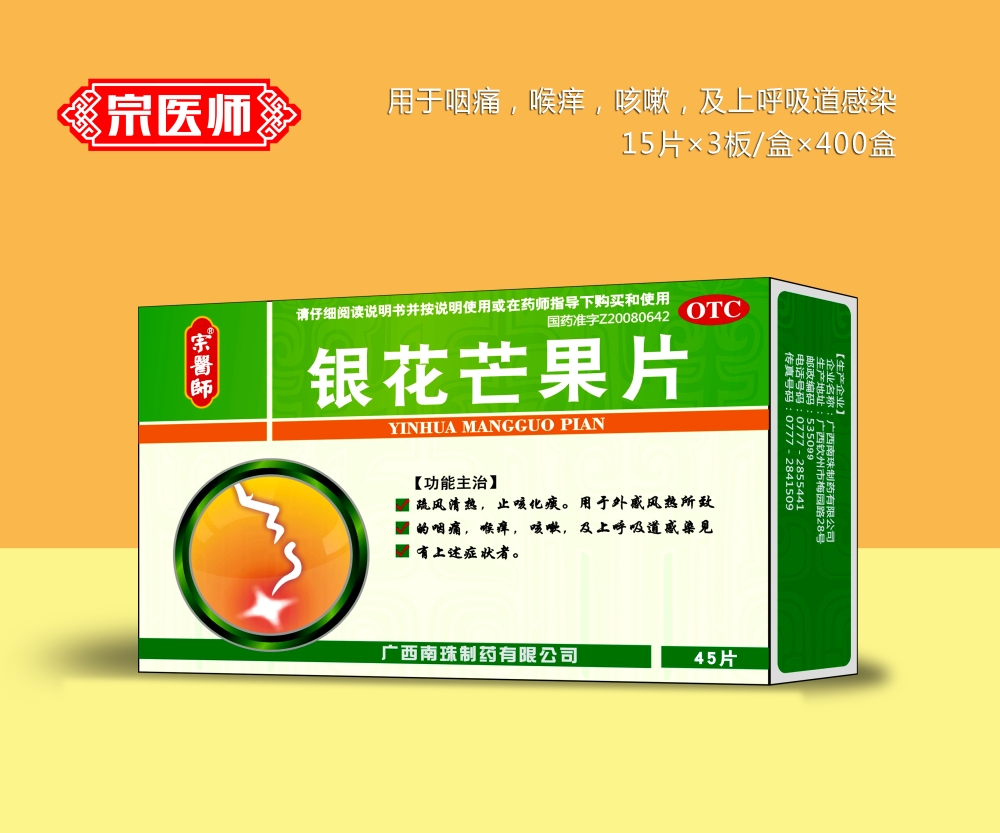 - 銀花芒果片 批準(zhǔn)文號(hào): 國藥準(zhǔn)字Z20080642規(guī) 格: 0.5g×15片×3板×400盒