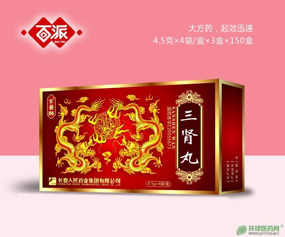 - 三腎丸 批準文號: 國藥準字Z20055673規(guī) 格: 4.5g×4袋×3盒×150盒