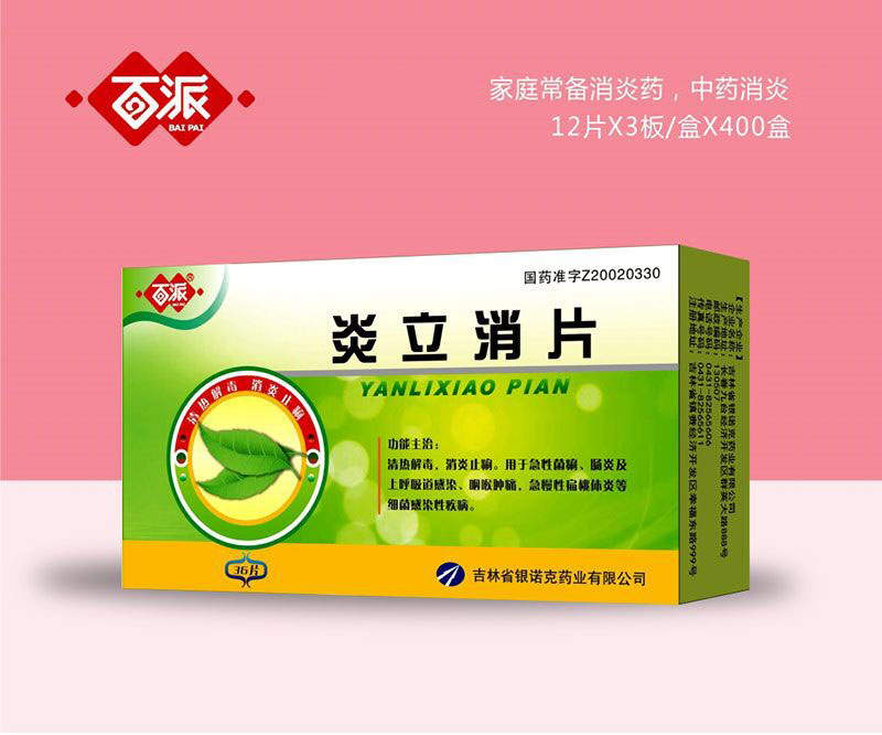 - 炎立消片 批準(zhǔn)文號(hào): Z20020330規(guī) 格: 12片×3板×400盒
