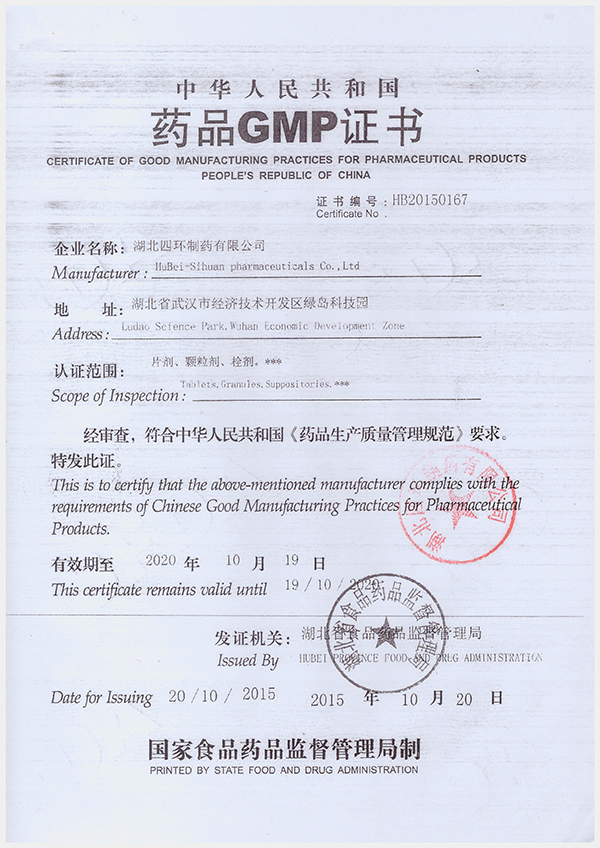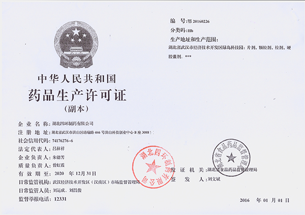 發(fā)證機關(guān): 湖北省藥品監(jiān)督管理局