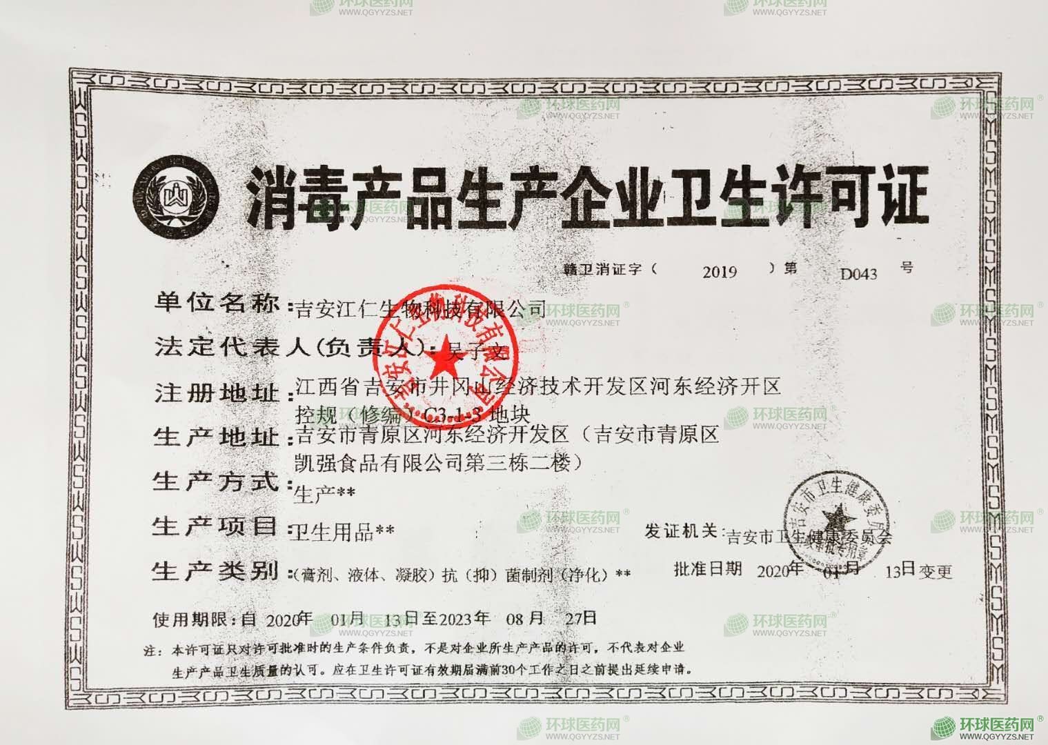 - 消毒產(chǎn)品生產(chǎn)許可證