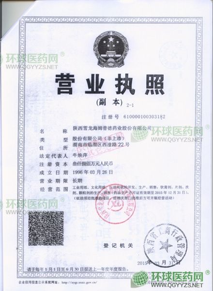 發(fā)證機(jī)關(guān): 陜西省藥品監(jiān)督管理局