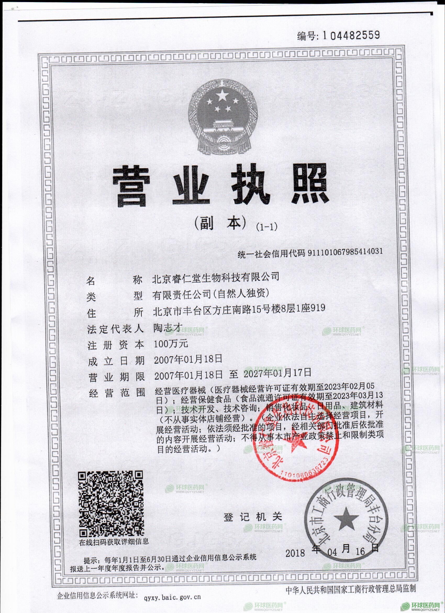 北京睿仁堂生物科技有限公司成立于2007年,自成立以來一直致力于醫(yī)藥推廣、醫(yī)療器械經(jīng)營、保健食品研發(fā)銷售等業(yè)務(wù)。