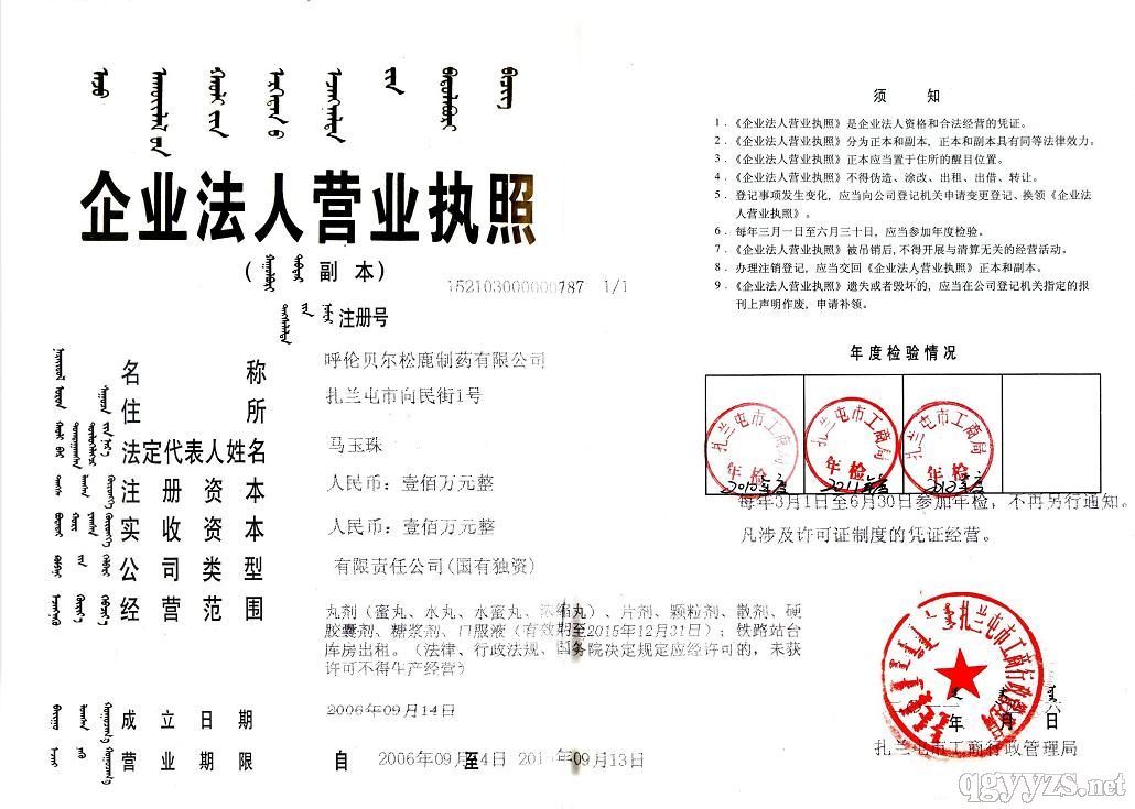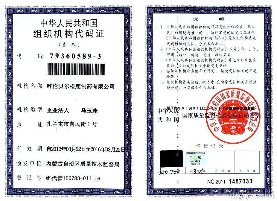 呼倫貝爾松鹿制藥有限公司前身呼倫貝爾哈慈制藥廠,國家gmp認證企業(yè),始建于1954年,是內蒙古自治區(qū)建廠早的制藥企業(yè)之一。2004年被評為呼倫貝爾市產業(yè)化龍頭企業(yè)。松鹿牌商標分別被評為2004年呼倫貝爾市著名商標,2005年內蒙古自治區(qū)知名商標。