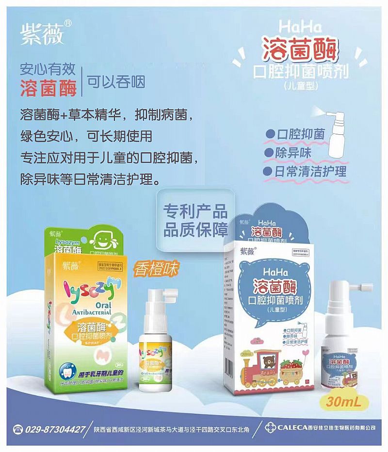溶菌酶兒童噴劑是專為兒童研制的兒童口腔抑菌噴劑,擁有正規(guī)消字號(hào)批準(zhǔn)文號(hào)(批準(zhǔn)文號(hào): 陜衛(wèi)消證字2019第X501號(hào)),更重要的是它是一款專利產(chǎn)品(國家專利申請(qǐng)?zhí)?202110199088.4)!