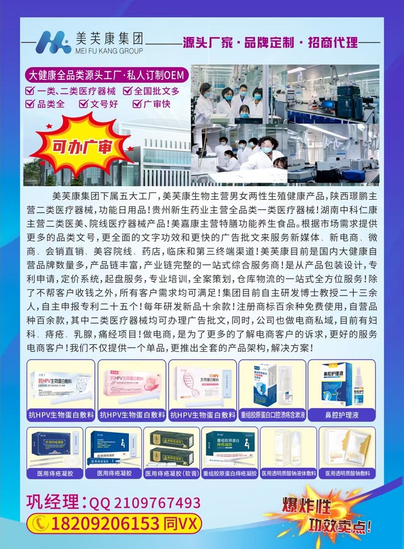 核心產(chǎn)品包括抗HPV生物蛋白輔料等,針對HPV感染預(yù)防、婦科炎癥輔助治療等剛需場景,憑借溫和配方與明確功效,成為藥店、美容院線、私域社群的走量品類;可辦理廣告批文,適配新媒體、電商等渠道推廣。