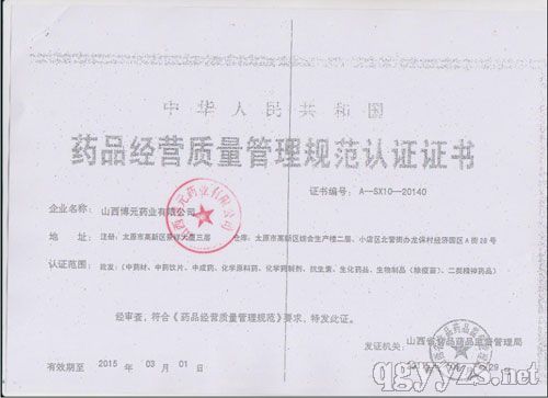 - 藥品經(jīng)營(yíng)質(zhì)量管理規(guī)范認(rèn)證證書