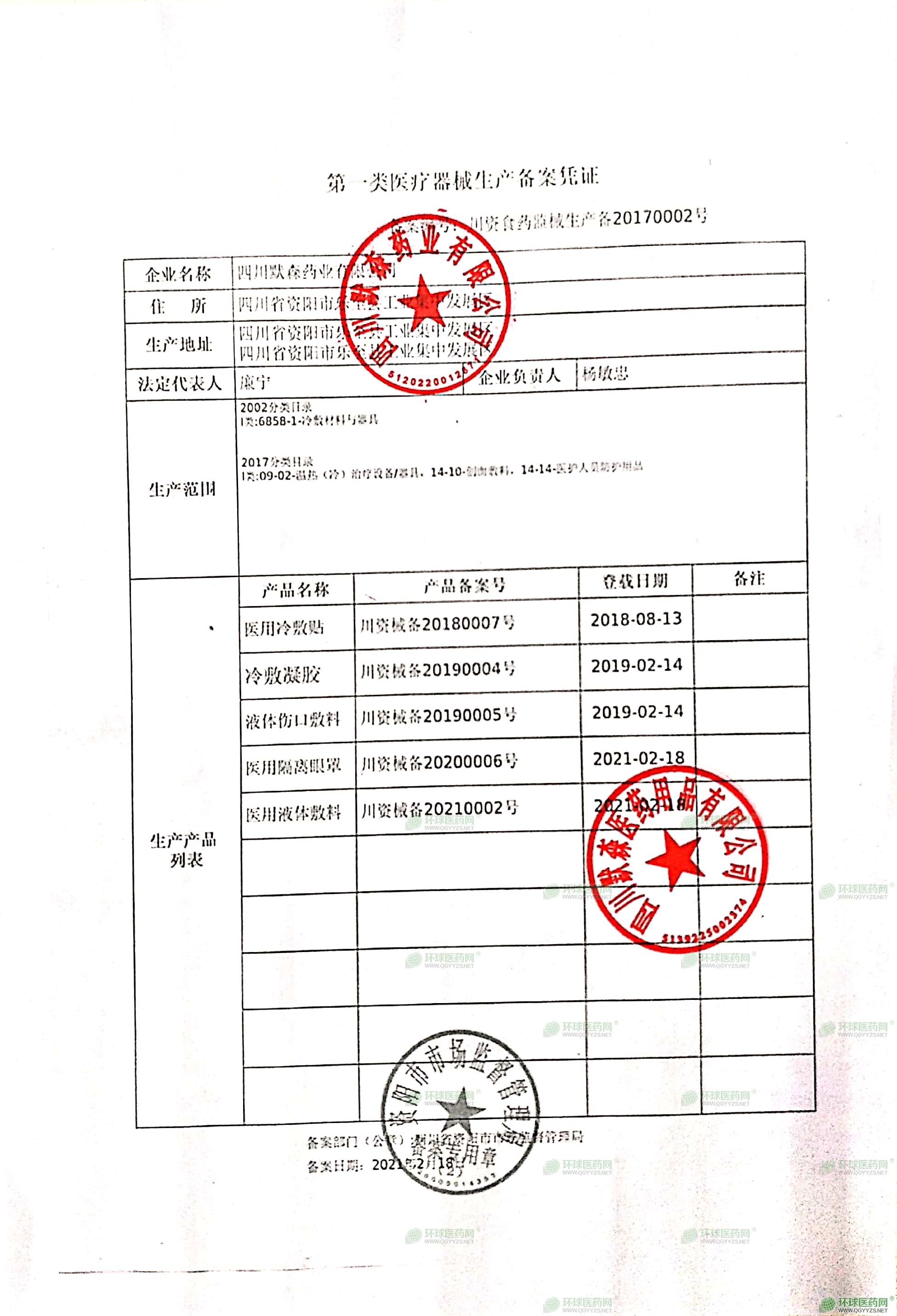 - 一類醫(yī)療器械備案憑證