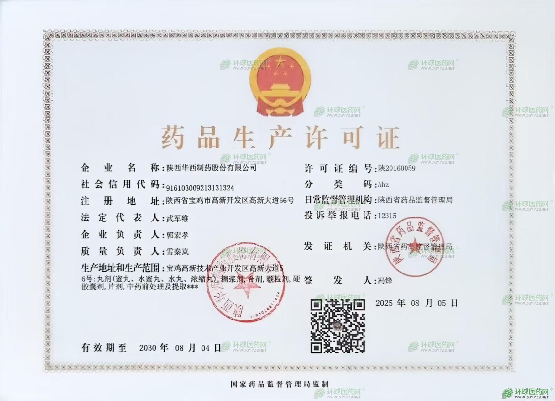 發(fā)證機關: 陜西省藥品監(jiān)督管理局