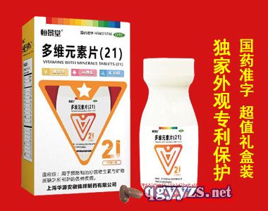 多維元素片(21)在補(bǔ)充多種維生素的同時,還適用于預(yù)防和治療因維生素與礦物質(zhì)缺乏所引起的**疾病。