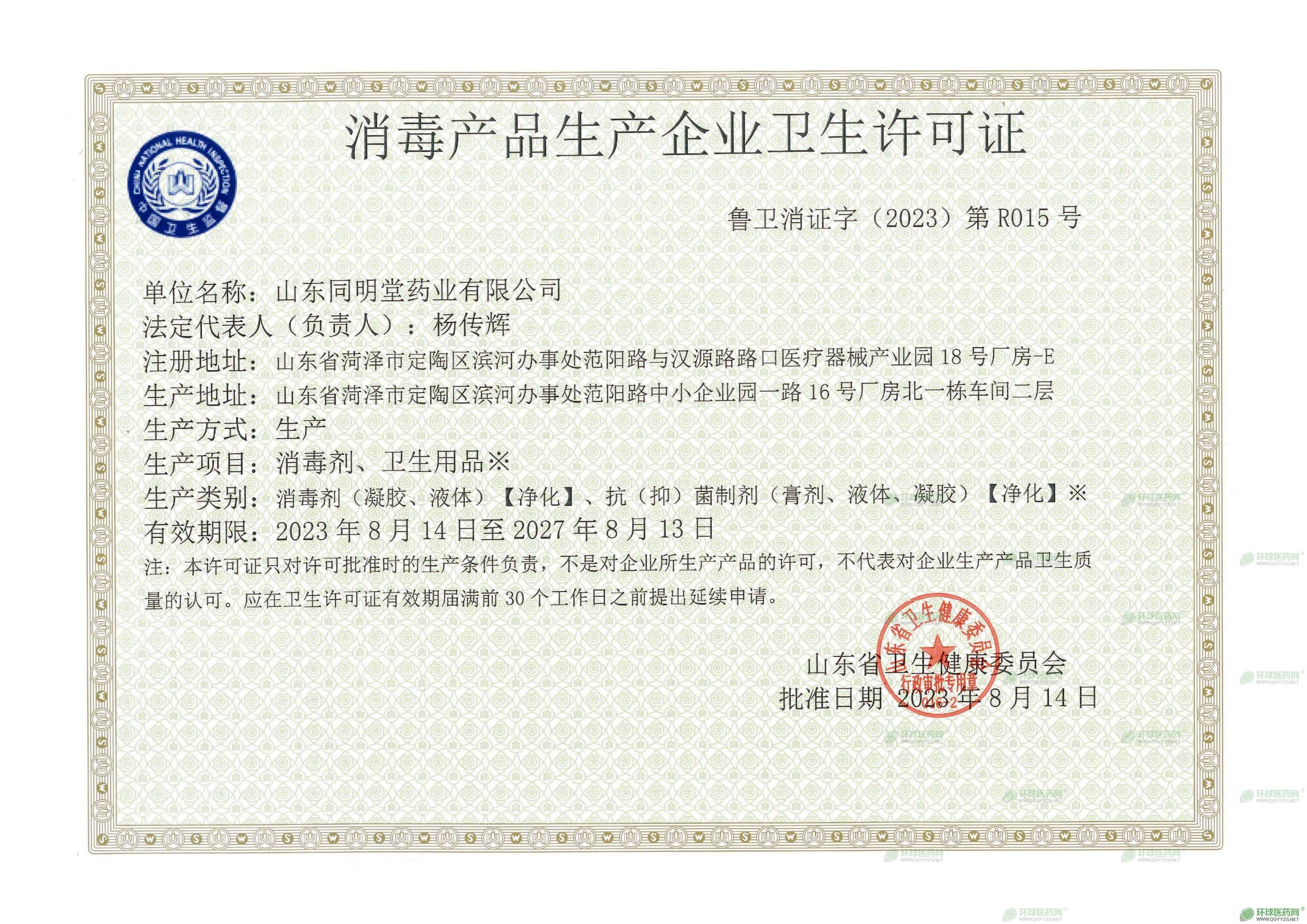 - 消毒產(chǎn)品生產(chǎn)許可證