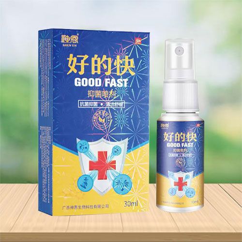 好的快抑菌噴劑主要成分蒼耳子、蒺藜、丁香、黃精、黃連、蛇床子、豬牙皂、地膚子、僵蠶、冰片、醋酸氯已定,適用于用于頭部、頸部、前胸后背、四肢、手足等多種皮膚不適處或瘙癢部位的抑菌、止癢、清潔、消除異味等。