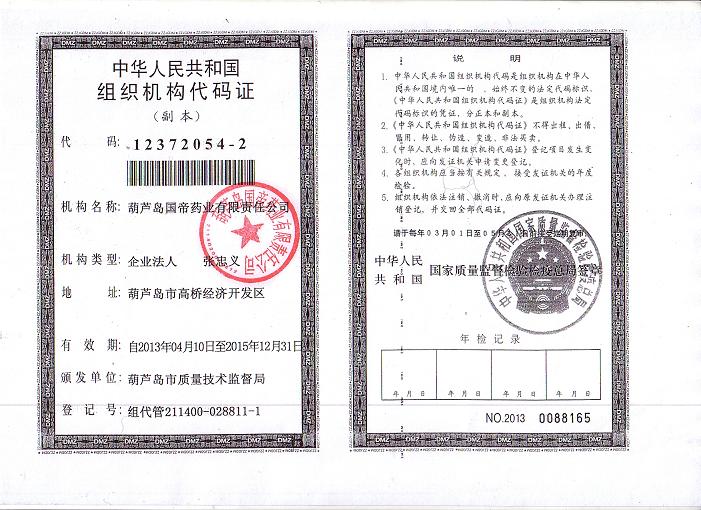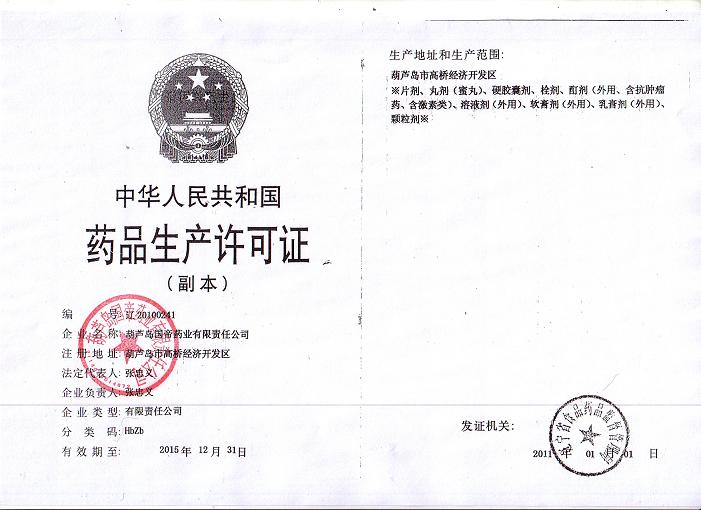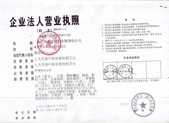 [企業(yè)法人]:葫蘆島國帝藥業(yè)有限責任公司