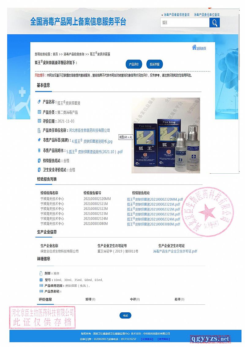 - 狐王®[I型]京治皮膚抑菌液 批準(zhǔn)文號(hào): 冀衛(wèi)消證字2019第0011號(hào)規(guī) 格: 5ml 10ml 30ml 35ml 60ml 65ml 100ml /瓶