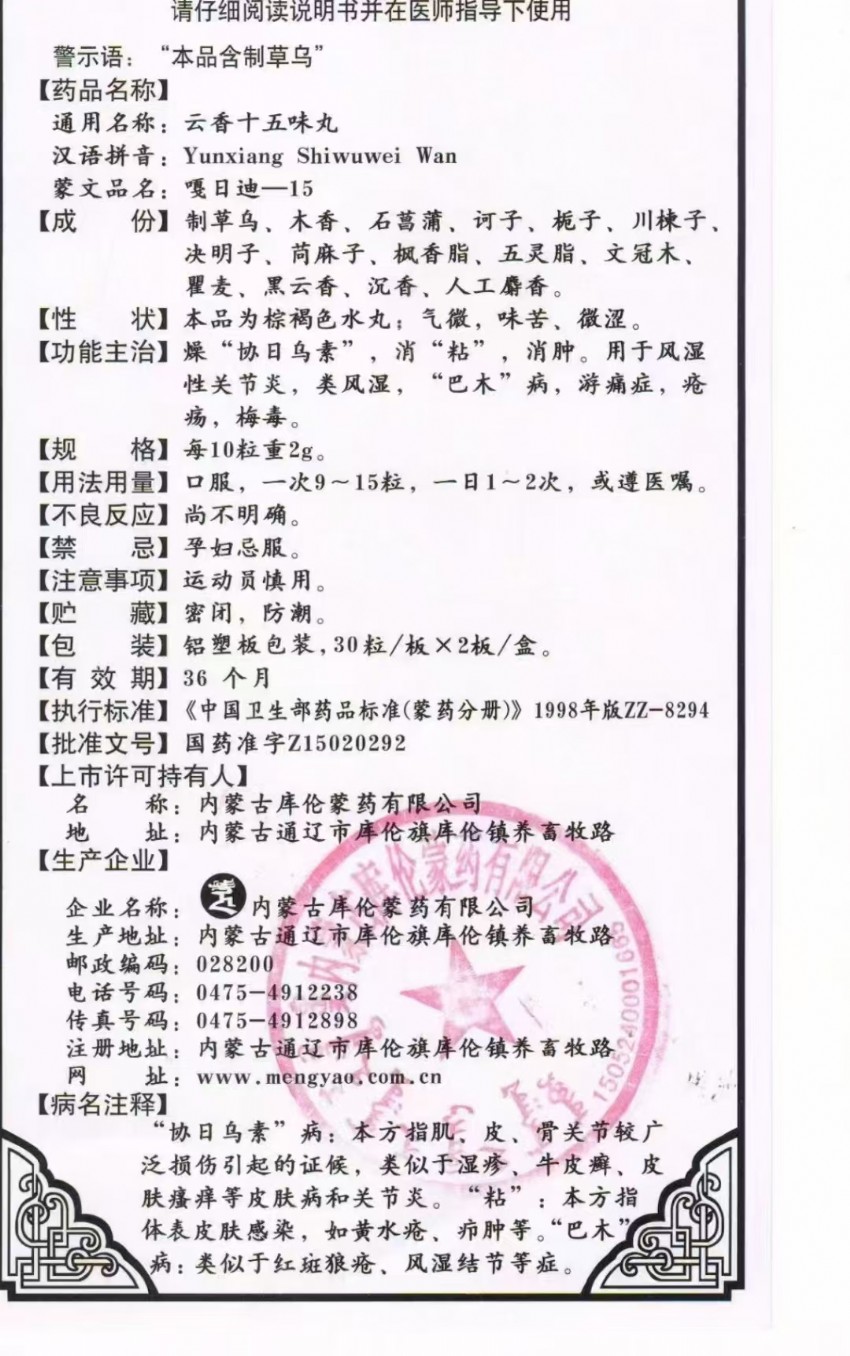 【蒙藥民族藥】云香十五味丸招商,游痛癥對(duì)癥產(chǎn)品,河南九康,誠(chéng)信共建單位!