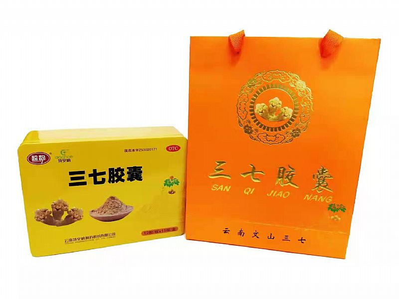三七膠囊,具有散瘀止血,消腫定痛的功效。用于氣虛血瘀的胸痹、胸肋刺痛、出血性病癥及跌撲腫痛。三七是中藥材中的一顆明珠,清朝藥學(xué)著作《本草綱目 文山三七 拾遺》中記載:"人參補(bǔ)氣**,三七補(bǔ)血**,味同而功亦等,故稱人參三七,為中藥中之*珍貴者。"