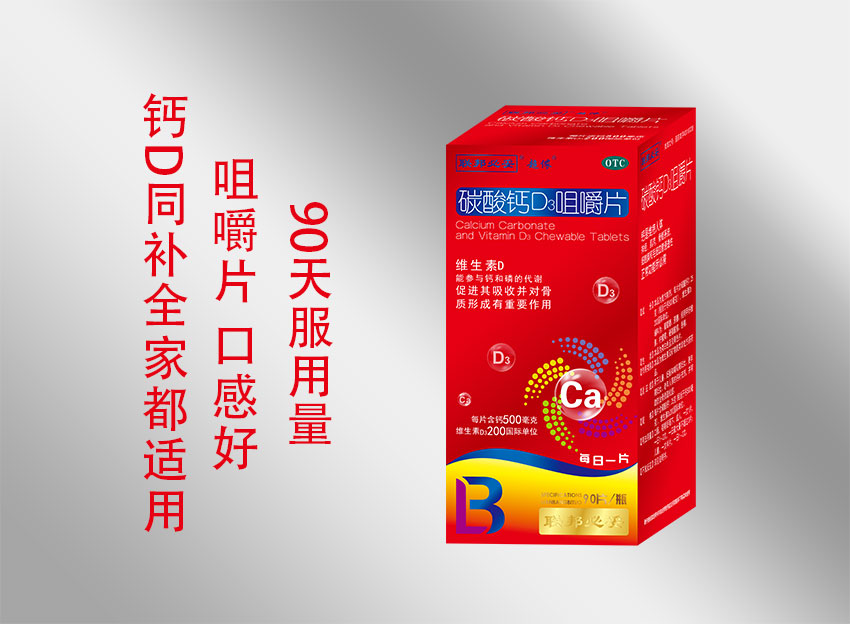 碳酸鈣D3咀嚼片為復(fù)方制劑,每片含碳酸鈣1.25克(相當(dāng)于鈣500毫克),維生素D3 200國(guó)際單位。輔料為:山梨醇、PVPK30、橘味顆粒、阿斯巴甜和硬脂酸鎂制成。