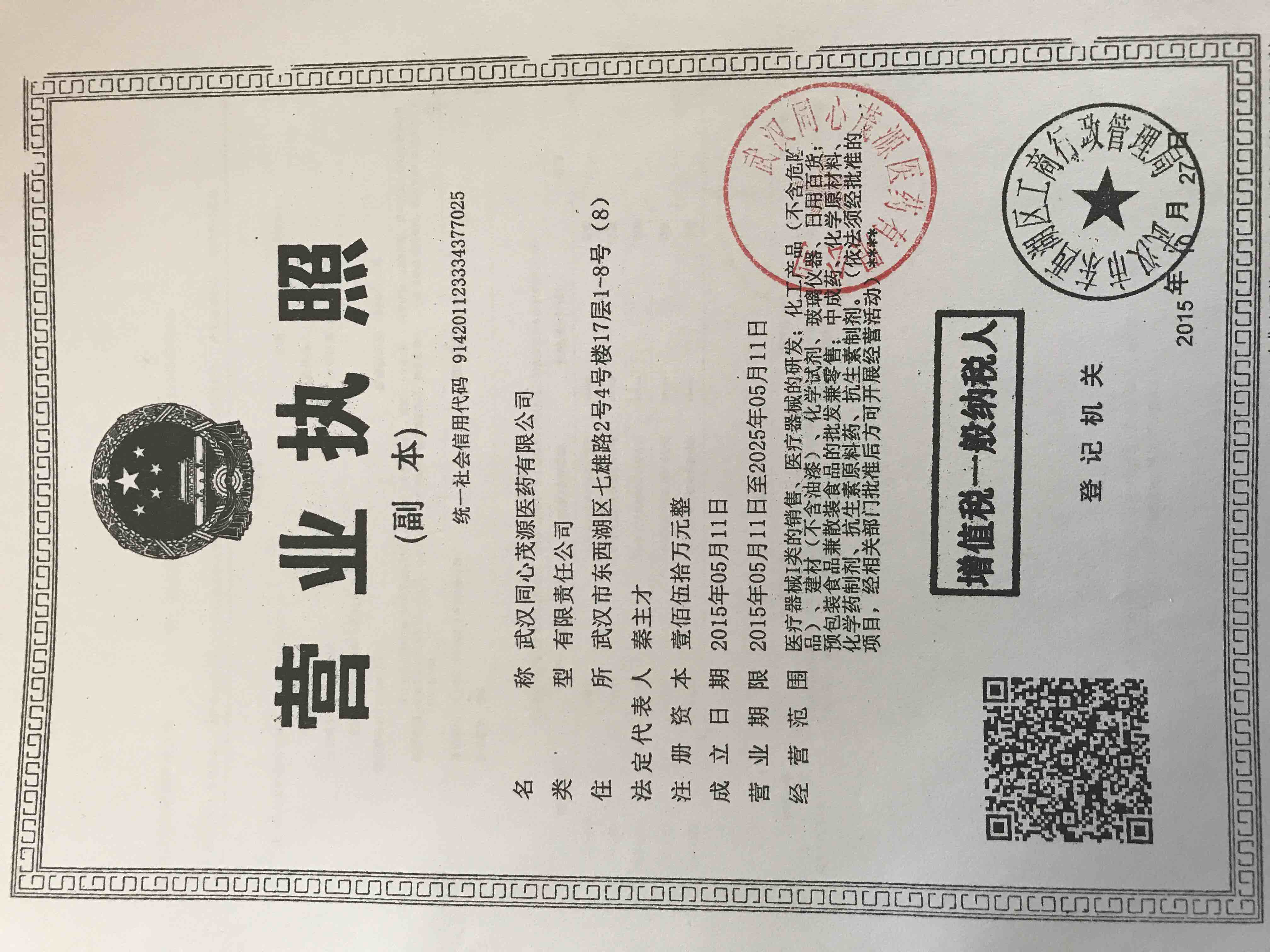 [企業(yè)法人]:武漢同心茂源醫(yī)藥有限公司