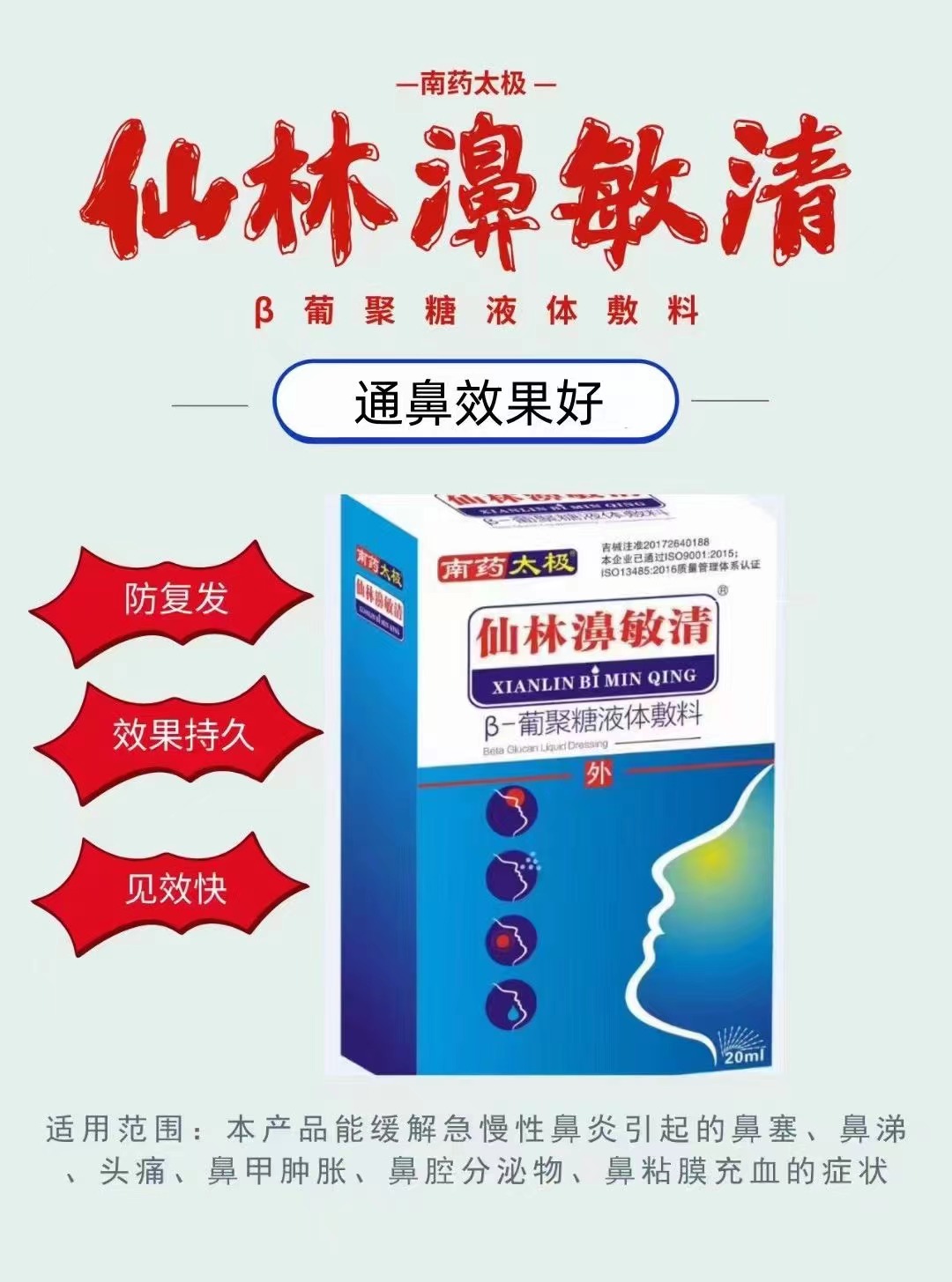 仙林濞敏清β-葡聚糖鼻炎噴劑優(yōu)勢: