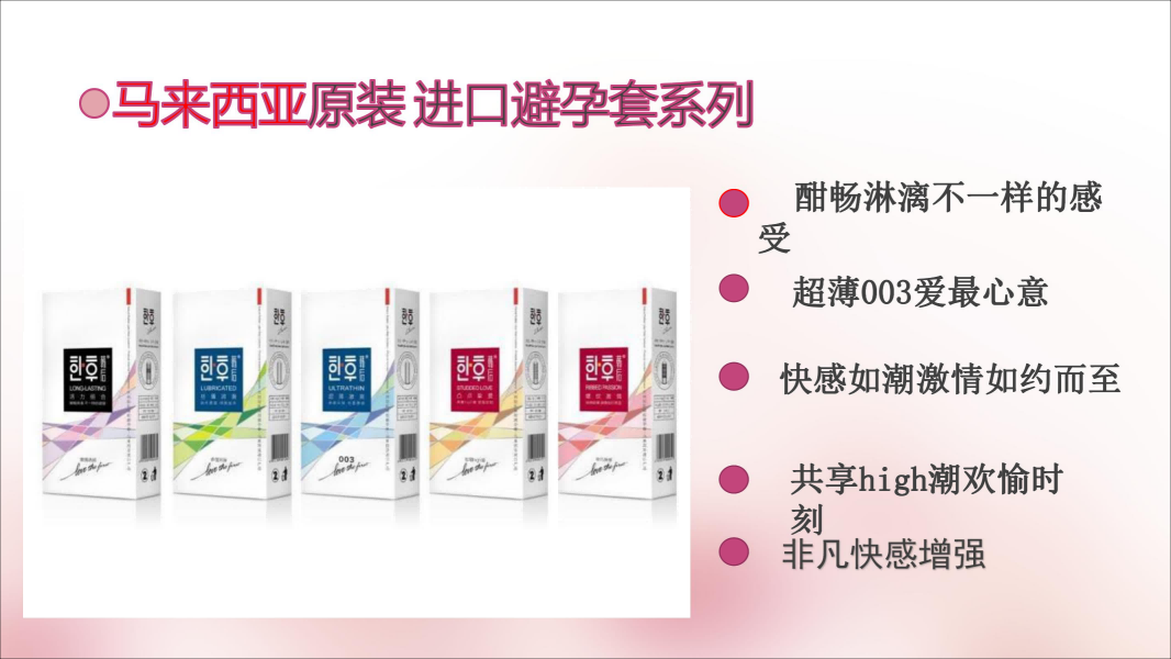 獨(dú)特:韓后**套,活力持久型。傳統(tǒng)與時(shí)尚結(jié)合,多種款式迎合不同消費(fèi)要求,特創(chuàng)造出光面、果味、持久、男性快感等多種傳統(tǒng)與時(shí)尚品味的**套。