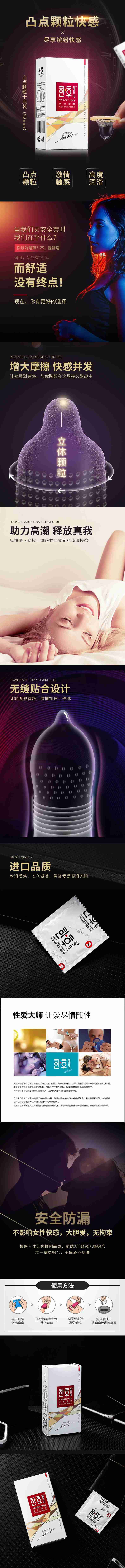 包裝:韓后安 全套采用現(xiàn)代時(shí)尚風(fēng)格包裝的設(shè)計(jì),均采用全國UV印刷工藝,局部起凸,獨(dú)特375克銀卡外盒,盡顯髙檔;同時(shí)避孕套“內(nèi)包裝”采用8.5絲鍍金純鋁內(nèi)袋,齒狀切口,可輕易撕開,并且每款鋁膜顏色均跟外包裝盒一致,更顯品質(zhì)髙檔。