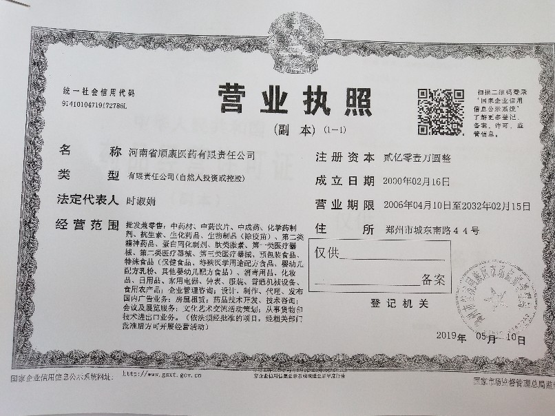 [企業(yè)法人]:河南省海爾森藥業(yè)有限公司