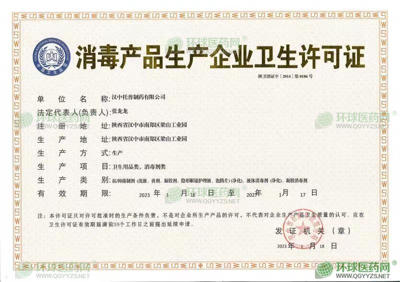 - 消毒產(chǎn)品生產(chǎn)企業(yè)衛(wèi)生許可證