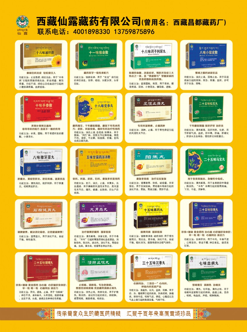 西藏仙露藏藥有限公司,曾用名:西藏昌都藏藥廠,位于譽(yù)有“藏藥材之鄉(xiāng)”的西藏昌都鎮(zhèn)內(nèi),是一家集開發(fā)、研制、生產(chǎn)為一體的國有企業(yè)。