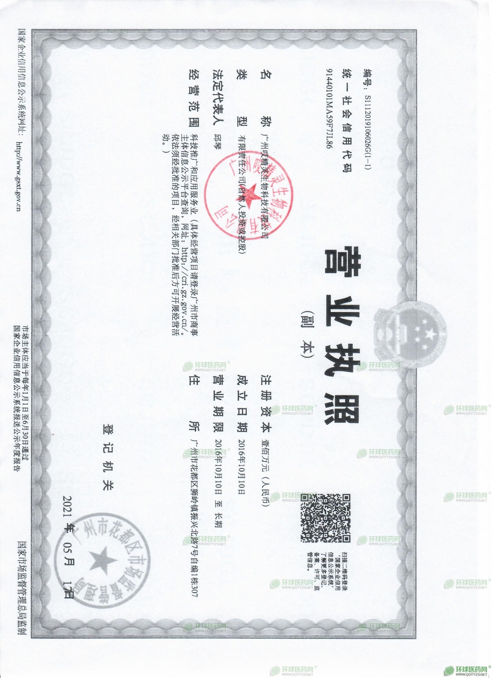 [企業(yè)法人]:廣州哎精靈生物科技有限公司