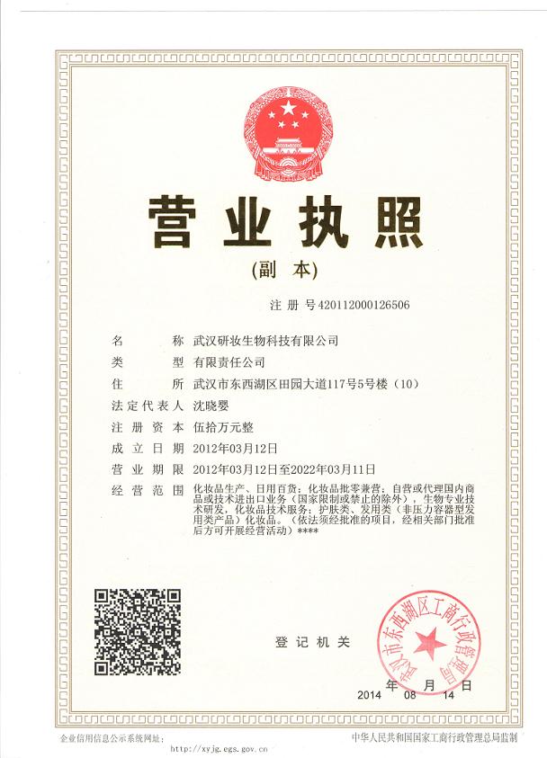 [企業(yè)法人]:武漢研妝生物科技有限公司