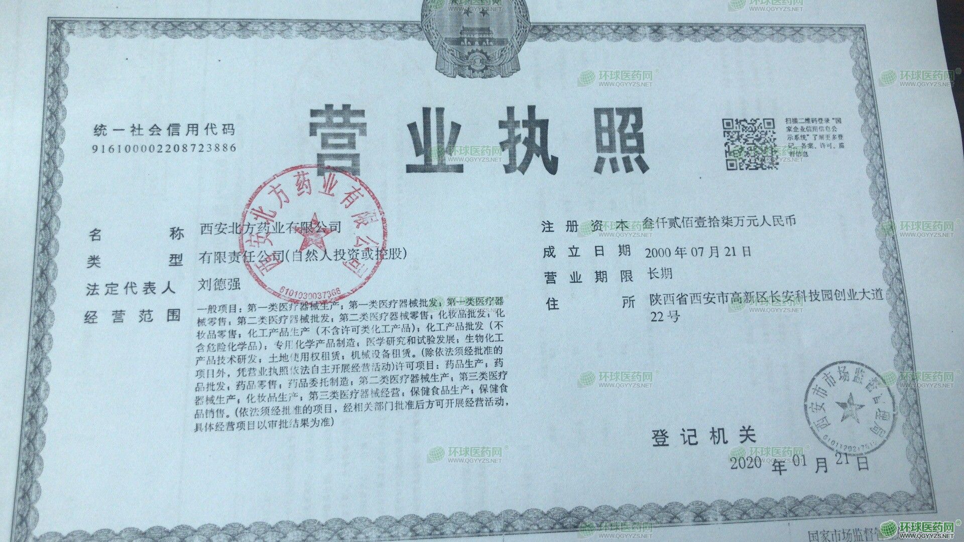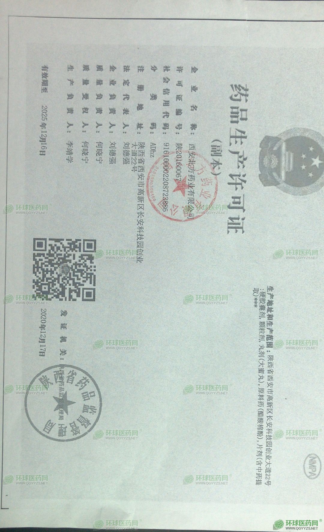 發(fā)證機(jī)關(guān): 陜西省藥品監(jiān)督管理局