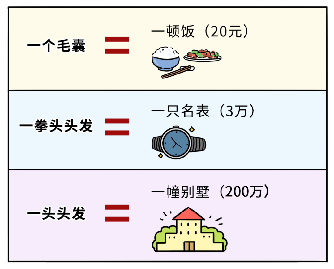 嚴(yán)重的脫發(fā)患者從植發(fā)到后期的保養(yǎng)費用大概要50萬,平均一根頭發(fā)25塊!