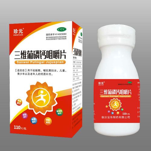 2、三維葡磷鈣咀嚼片(批準(zhǔn)文號(hào): 國藥準(zhǔn)字H14023080)