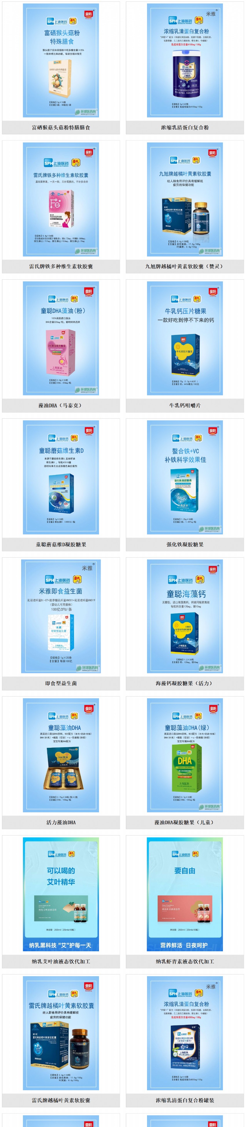 公司研發(fā)出九旭牌越橘葉黃素軟膠囊、雷氏牌鐵多種維生素軟膠囊等保健食品、米雅即食型益生菌、富硒猴頭菇粉、濃縮乳清蛋白復(fù)合粉、童聰藻油DHA凝膠糖果等營(yíng)養(yǎng)食品以及納米乳劑專(zhuān)利產(chǎn)品納乳DHA、納乳羅伊氏乳桿菌、納乳蝦青素等產(chǎn)品。