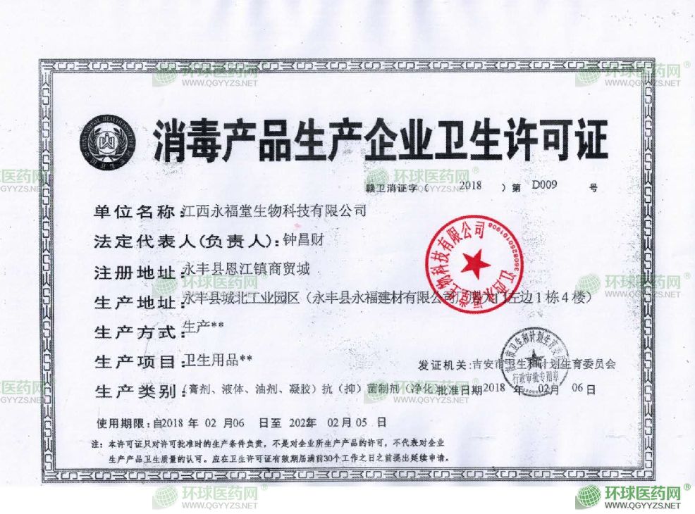 - 消毒產(chǎn)品生產(chǎn)許可證