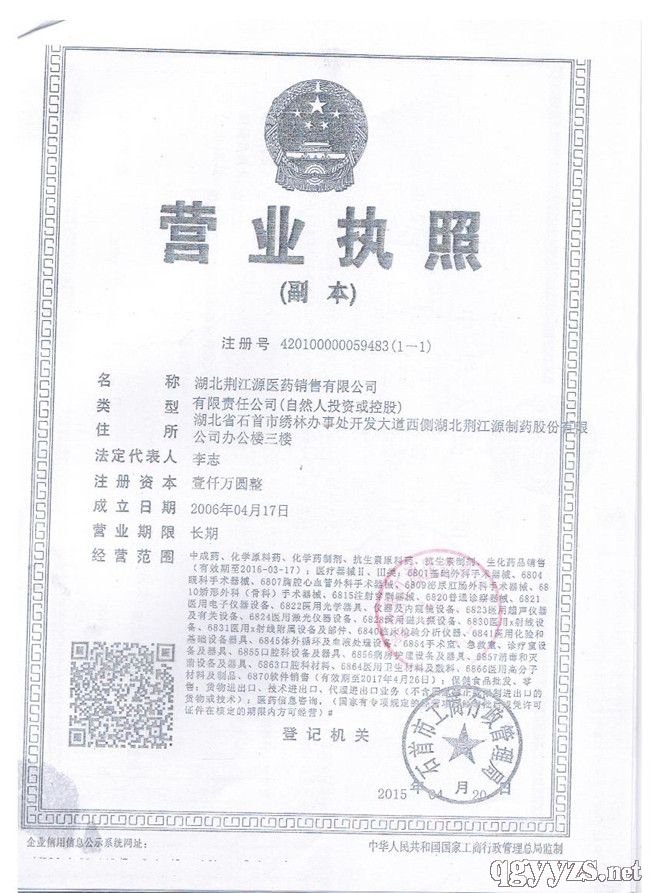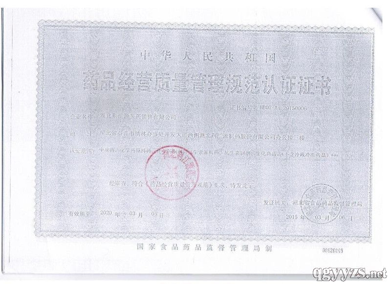 發(fā)證機(jī)關(guān): 湖北省藥品監(jiān)督管理局