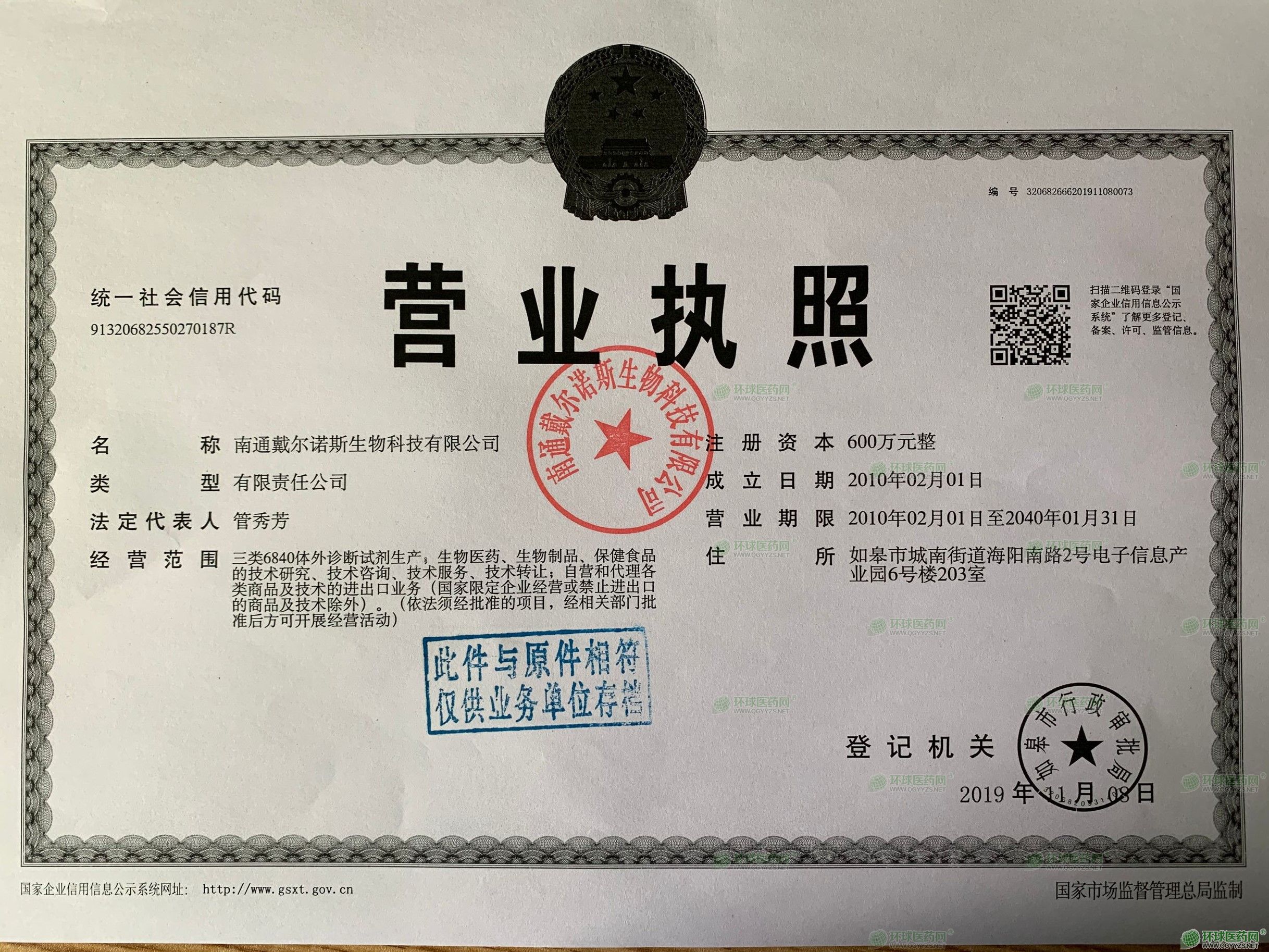南通戴爾諾斯生物科技有限公司
