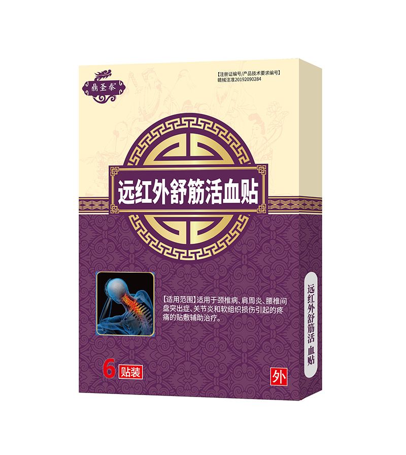 - 遠(yuǎn)紅外舒筋活血貼 批準(zhǔn)文號(hào): 贛械注準(zhǔn)20192090284規(guī) 格: 6貼/盒