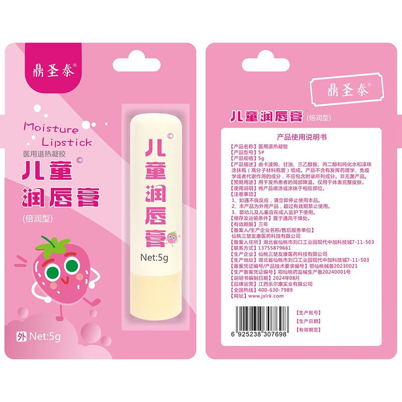 - 兒童潤唇膏醫(yī)用退熱凝膠 批準(zhǔn)文號: 鄂仙桃械備20230021規(guī) 格: 5g/支