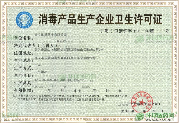 - 消毒產(chǎn)品生產(chǎn)企業(yè)衛(wèi)生許可證