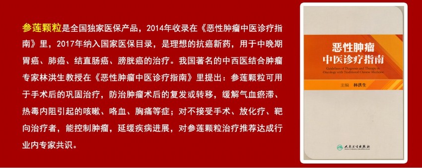 1.參蓮顆粒為中藥制劑,適合長期服用,尤其是化療期間或化療后出院患者繼續(xù)服用,可鞏固療效延長生存期。