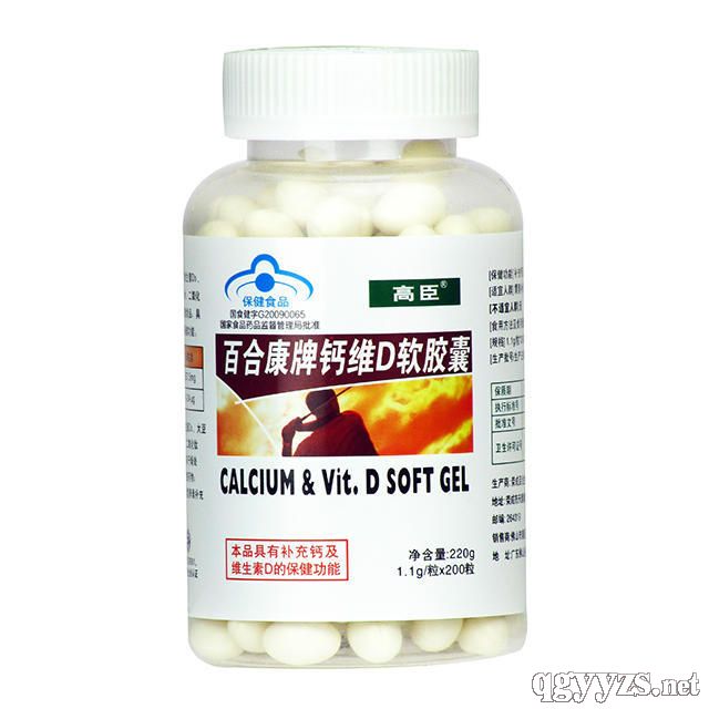 - 百合康牌鈣維D軟膠囊 批準文號: 國食健字G20090065規(guī) 格: 1.1g/粒*200粒