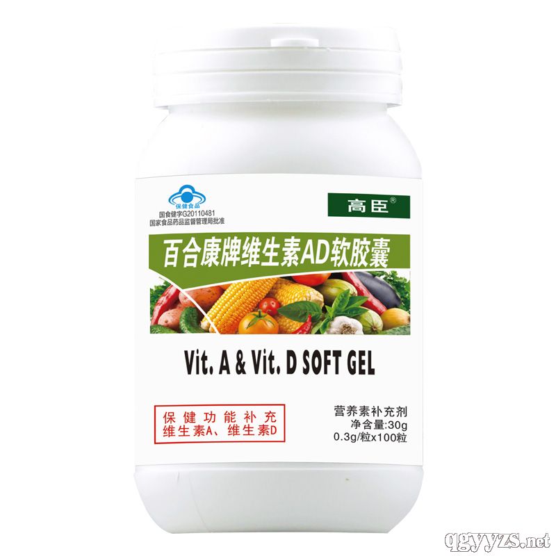 - 百合康牌維生素AD軟膠囊 批準文號: 國食健字G20110481規(guī) 格: 0.3g/粒*100粒