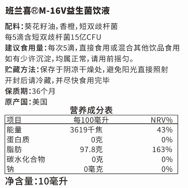 產(chǎn)品名稱:班蘭喜M-16V益生菌飲液