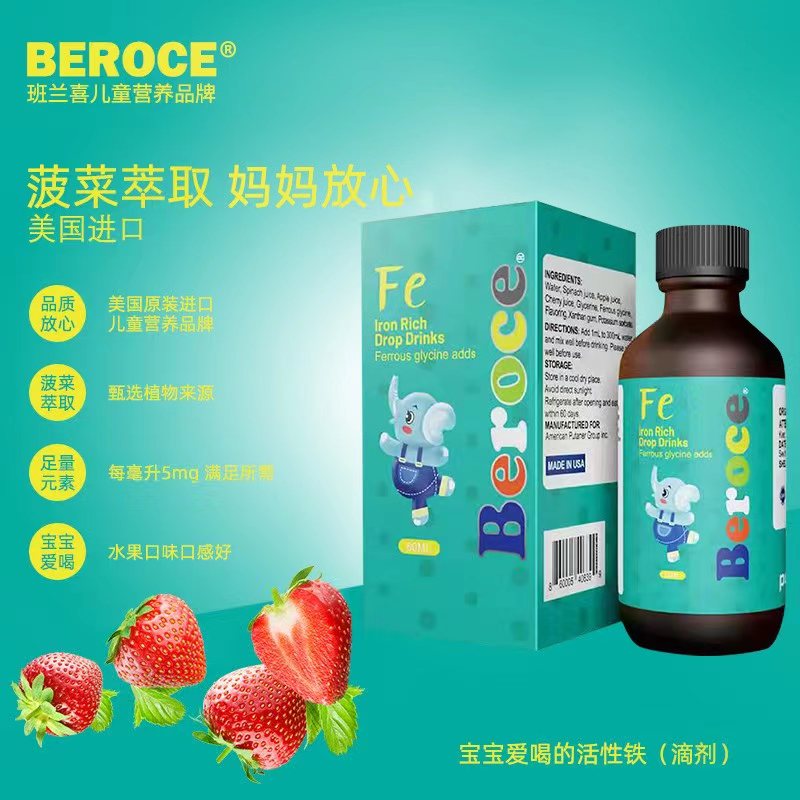 主要成分配料:水、甘氨酸亞鐵、菠菜汁、蘋果汁、櫻桃汁、油、黃原膠、酪蛋白磷酸肽