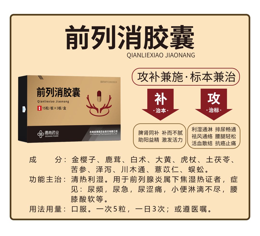 前列腺疾病,作為一種長(zhǎng)期威脅男性生殖健康的疾病,需要我們充分的重視。德商藥業(yè)的前列消膠囊,由四大中醫(yī)古方加減化裁而來(lái),包含有鹿茸、金櫻子、虎杖、蜈蚣等多味中藥。在強(qiáng)腎健脾的同時(shí),也具有利濕通淋的功效,真正做到補(bǔ)而不膩,攻補(bǔ)兼施,標(biāo)本兼治。方中使用的鹿茸精選自被譽(yù)為“東北三寶”之一的長(zhǎng)白山**梅花鹿鹿茸,其具有補(bǔ)精助陽(yáng),強(qiáng)筋健骨的功效,是治療男性生殖疾病的**選擇。